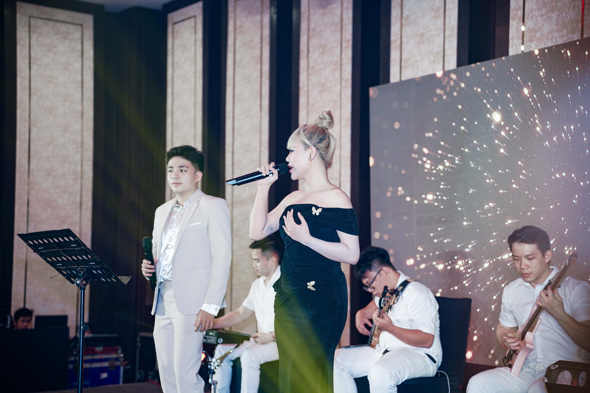 Giữa không gian lung linh ánh đèn, từng giai điệu vang lên như chạm vào cảm xúc – một đêm tiệc không chỉ đẹp, mà còn đậm đà tình thân và nơi âm nhạc trở thành cầu nối, đưa mọi người xích lại gần nhau hơn trong không khí rộn ràng và đầy ấm áp.