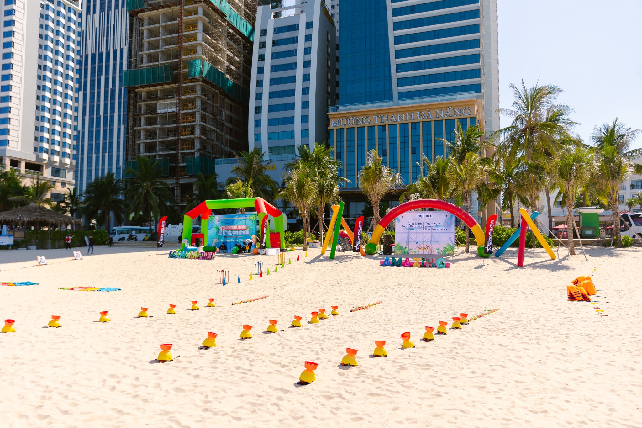 Giữa không gian thiên nhiên khoáng đạt, tập thể Nam Việt đã cùng nhau vượt qua chuỗi thử thách độc đáo, từ vận động thể lực, phối hợp nhóm đến những trò chơi chiến thuật đòi hỏi sự linh hoạt và đồng lòng. Mỗi tiếng cười, mỗi cú bắt tay, mỗi bước chân trên cát đều ghi dấu một tinh thần thép – bản lĩnh của những chiến binh trong ngành BĐS đầy cạnh tranh.